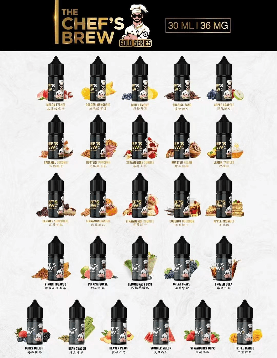 THE Chefs Brew 廚師佳釀 原味系列 尼古丁鹽電子煙油|36mg/ml 高純度丁鹽煙油