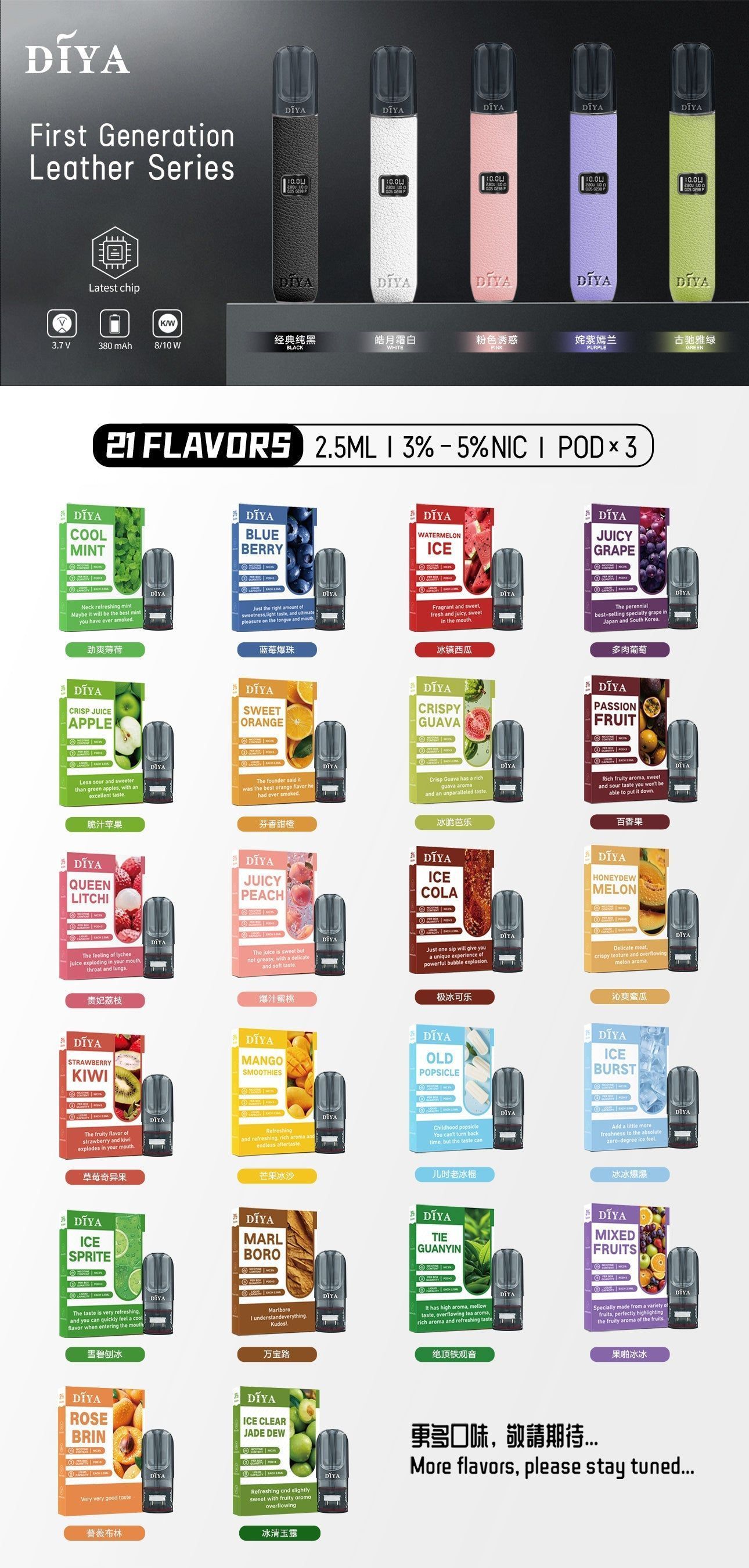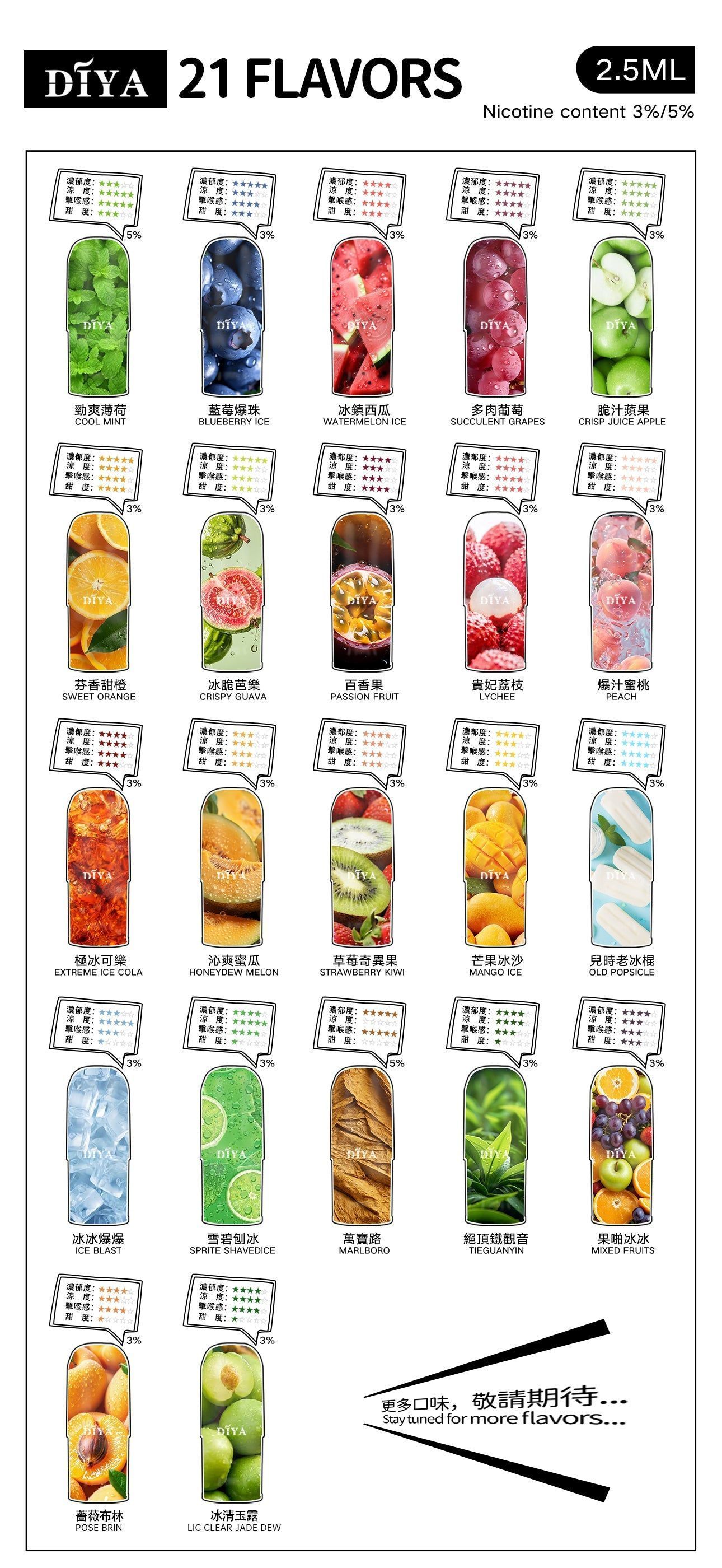 【diya全新升級版煙彈】消費者期待的高性價比替代方案重磅登場!針對煙彈用戶最頭痛的「口感單薄」「香氣失真」「設備不兼容」三大痛點,進行全方位升級優化——煙油配方採用進口高純度原料,經過多層雜質淨化工藝,不僅減少咽喉刺激感,更讓霧化顆粒直徑縮小至更細緻的級別,入口綿密順滑無嗆感;香氣還原度較舊版提升30%,不論是果香的鮮甜層次、薄荷的清涼透徹,或是經典煙草的醇厚韻味,都能精準還原每一種風味的原始精髓。更重要的是,diya升級版煙彈依舊維持廣泛設備兼容性,完美適配sp2、relx一代、lana等主流一代煙彈主機,彈倉插拔緊密不鬆動、不滲油,無需更換現有設備即可輕鬆替換,是節省預算又想提升體驗的首選替代原廠煙彈產品!